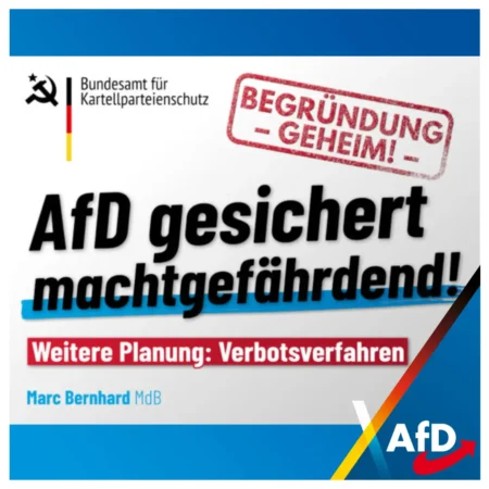 𝗪𝗲𝗶𝘁𝗲𝗿𝗲 𝗣𝗹𝗮𝗻𝘂𝗻𝗴: 𝗩𝗲𝗿𝗯𝗼𝘁𝘀𝘃𝗲𝗿𝗳𝗮𝗵𝗿𝗲𝗻 Was sich derzeit in Deutschland abspielt, hat mit Rechtsstaat rein gar nichts mehr zu tun. Die Kartellparteien wissen, dass sie die AfD auf demokratischem Wege nicht mehr aufhalten können. Deshalb greifen sie nun zu Mitteln der Repression. Der sogenannte „Verfassungsschutz“ ist längst zu einem Regierungsschutz umfunktioniert worden: Eine weisungsgebundene Behörde, dreist instrumentalisiert […]
