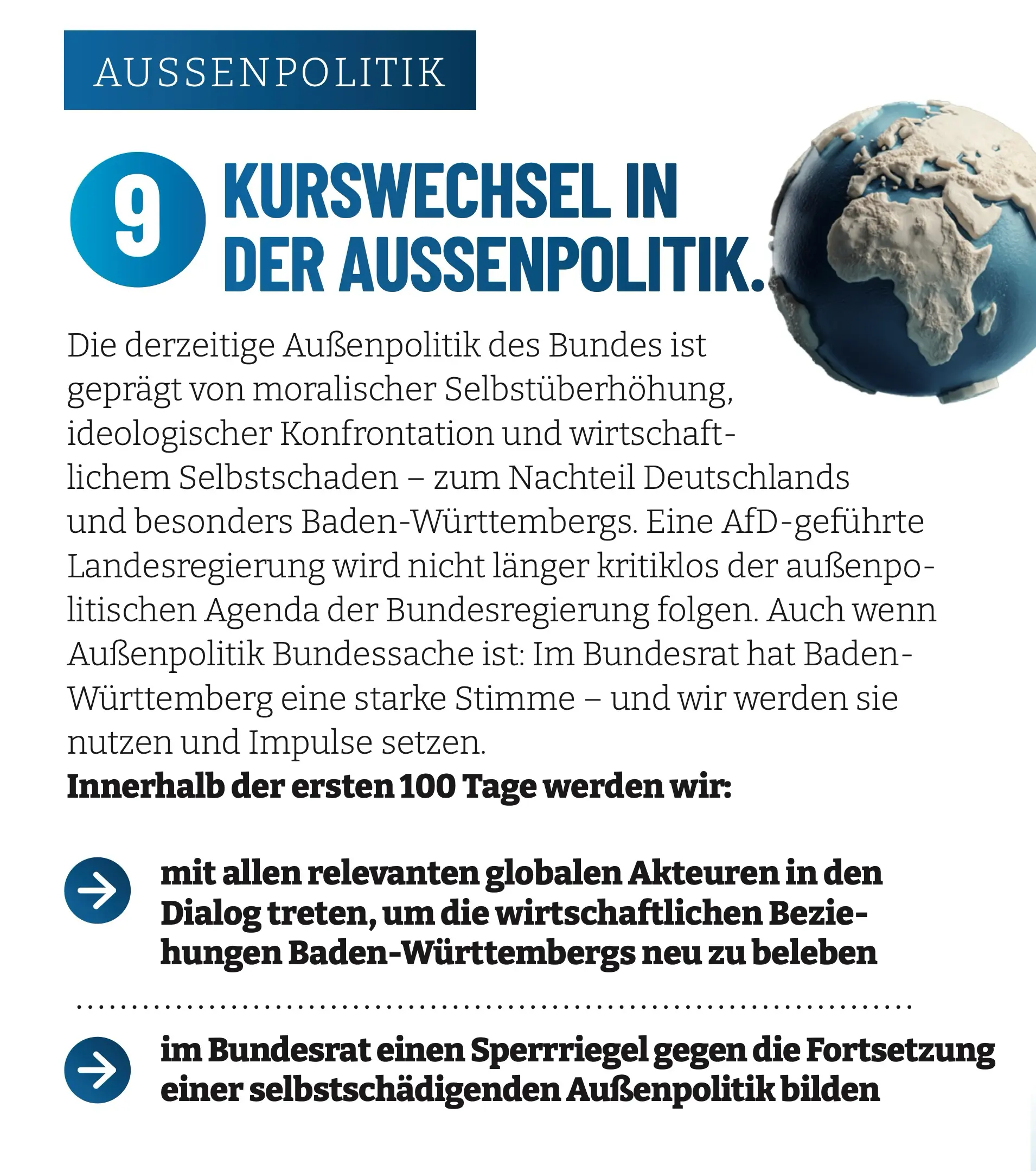 Baden-Württemberg wird unter einer All-Regierung zum außenpolitischen Korrektiv der Bundespolitik werden – für eine souveräne, wirtschaftlich kluge und friedensfördernde Politik im eigenen Interesse.
